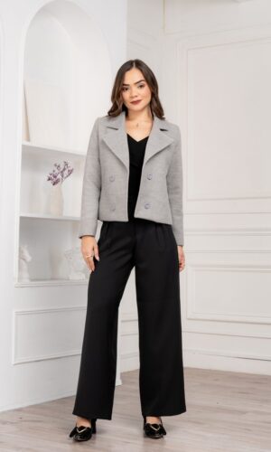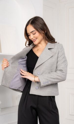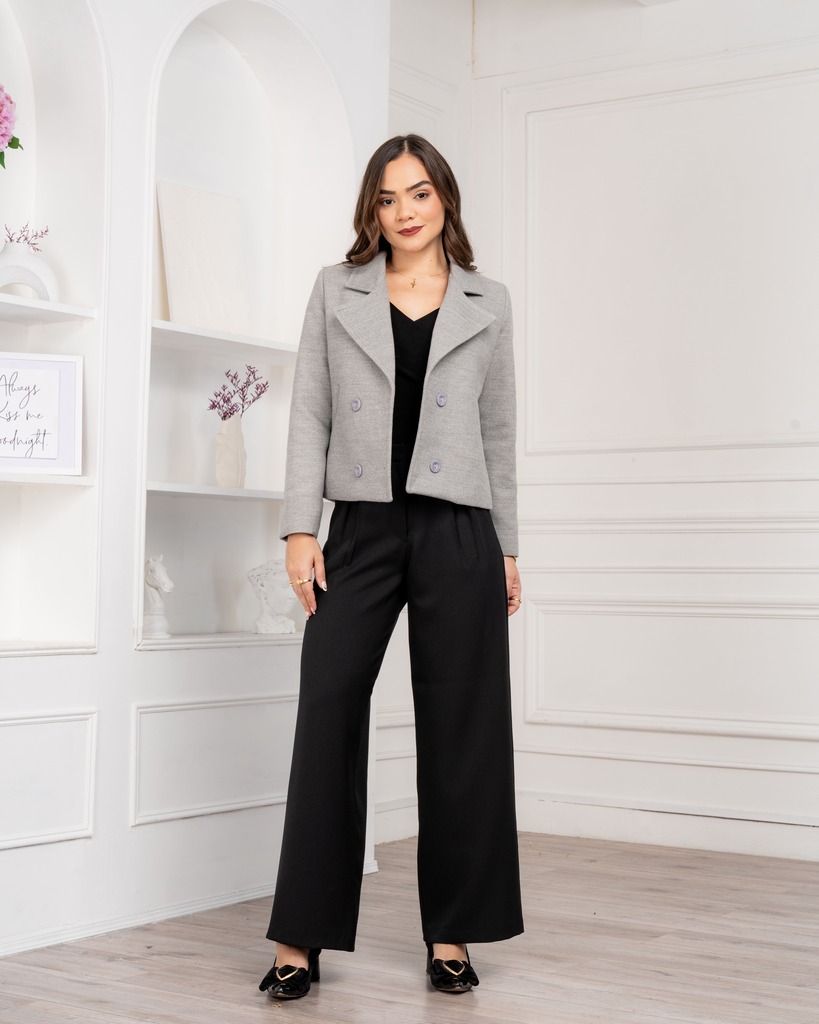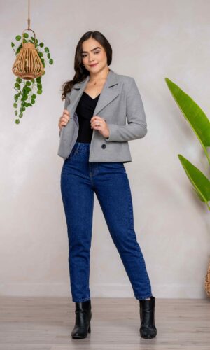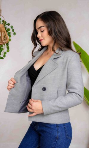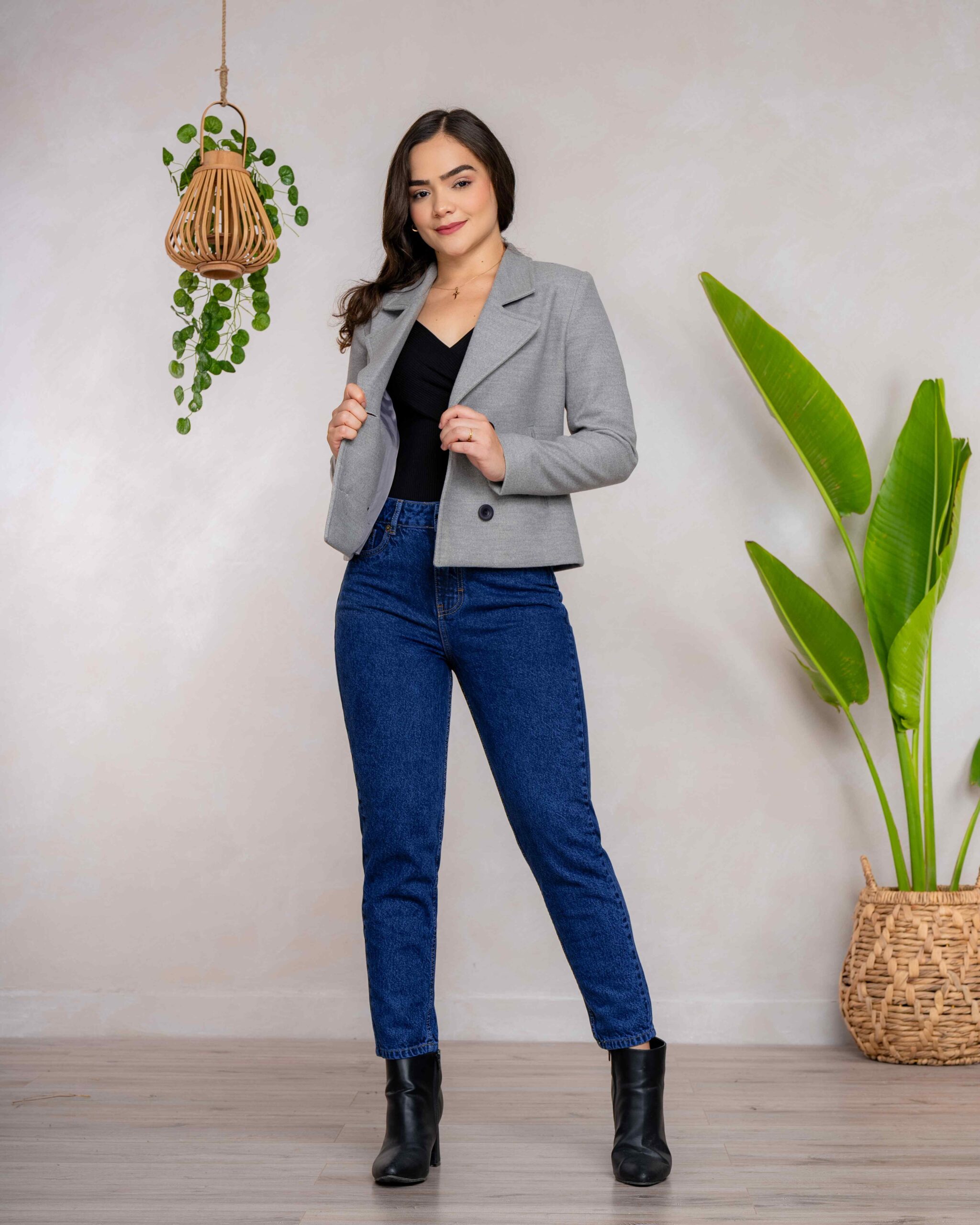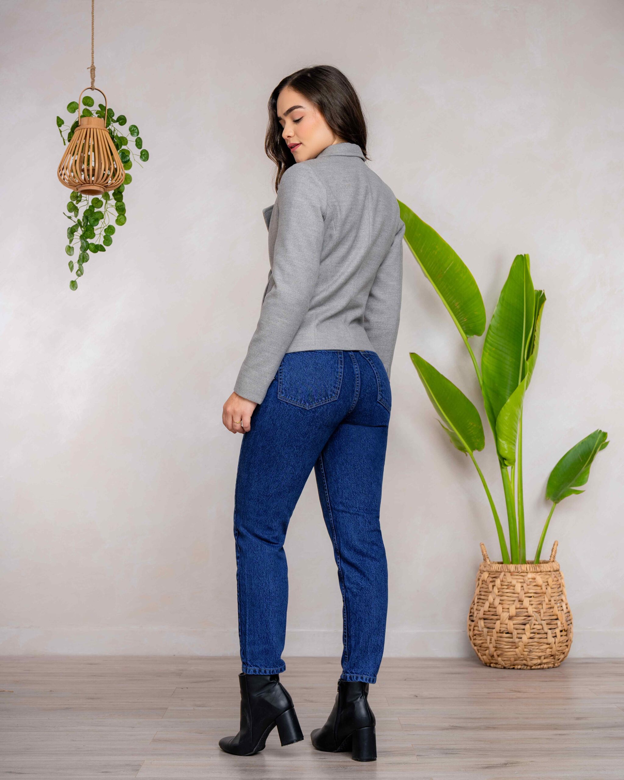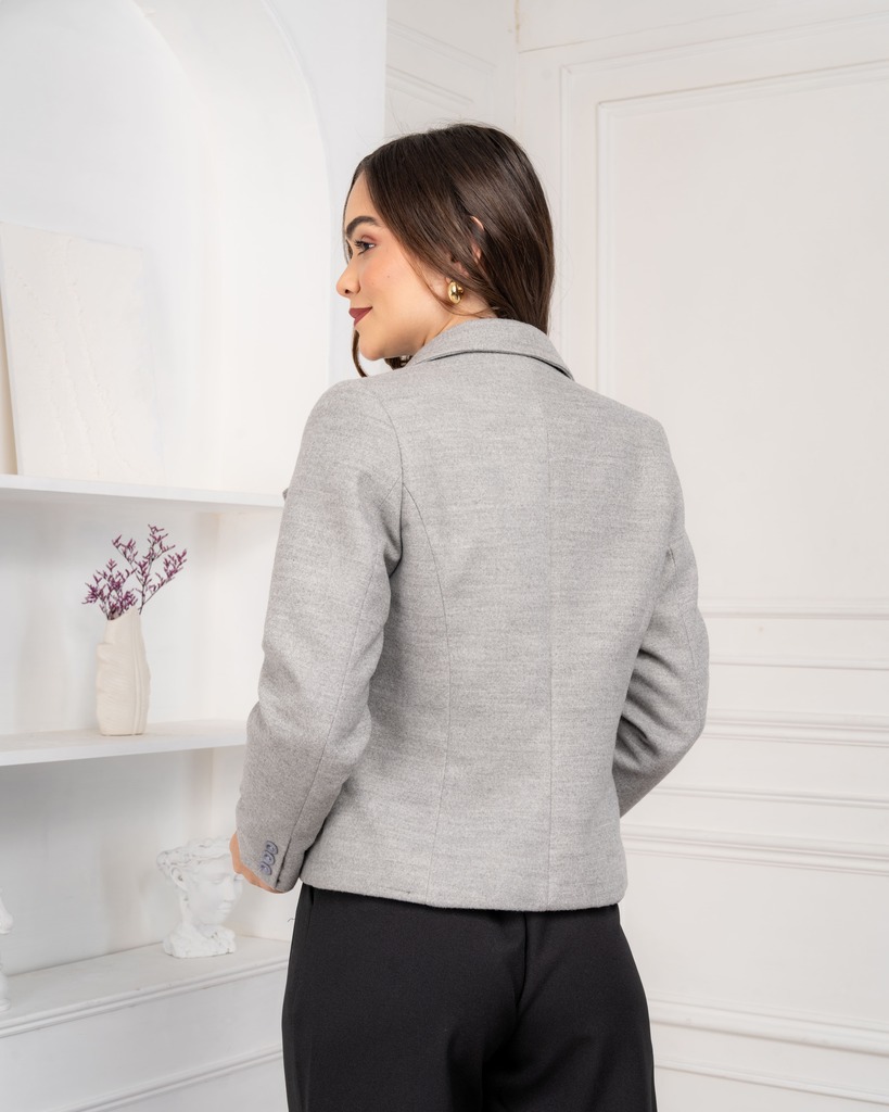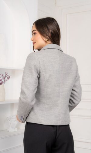 Confeccionado en Paño Berlín, cuenta con forro interior que aporta firmeza y caída elegante, además de un corte princesa en la espalda que realza y estiliza la silueta.