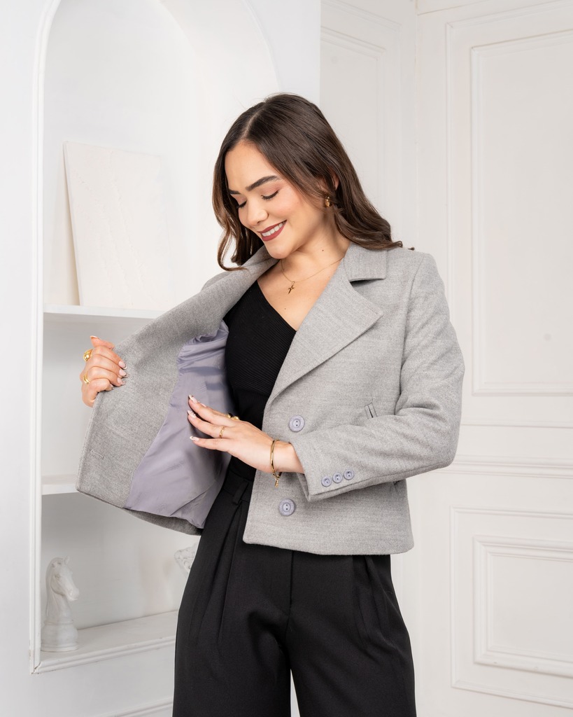 Confeccionado en tela paño Berlín, lleva 4 botones para que puedas usarlo cerrado, este modelo tiene forro interior brindando la estructura adecuada de un abrigo tipo sastre, además lleva bolsillos laterales, en la parte de la espalda lleva corte princesa, también lleva botones en las mangas 🤩