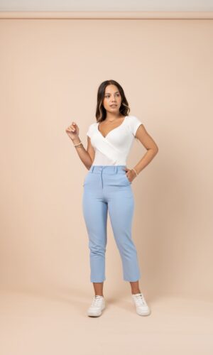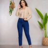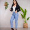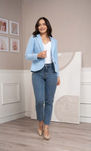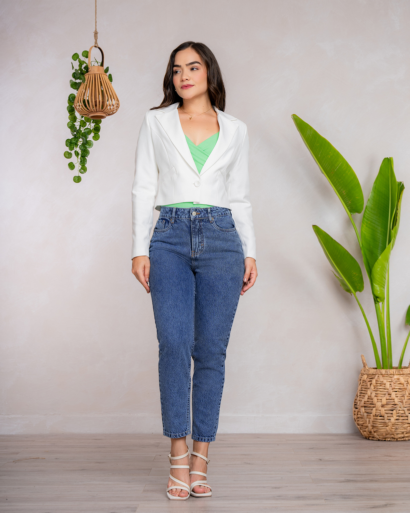 Jean de cintura alta y ceñido a la cintura, 4 bolsillos con detalles metálicos, Denim rígido original, estructurado para resaltar tu figura.