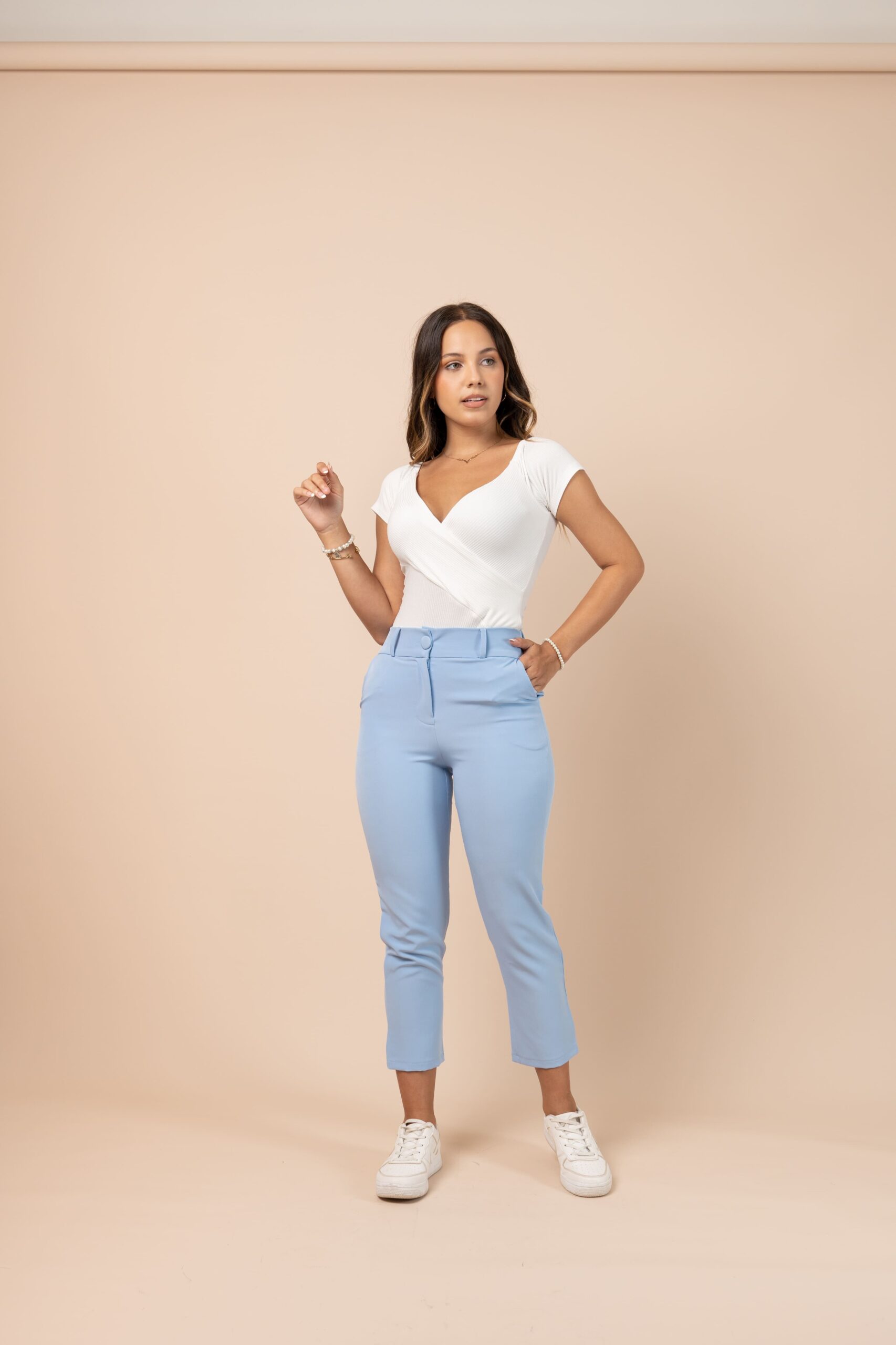 Confeccionado en tela Catania, lleva bolsillos laterales, es a la cintura, con pinzas en la parte posterior para poder afinar la cintura, tiene el botón forrado y puedes usarlo con la correa que más te guste 🥰